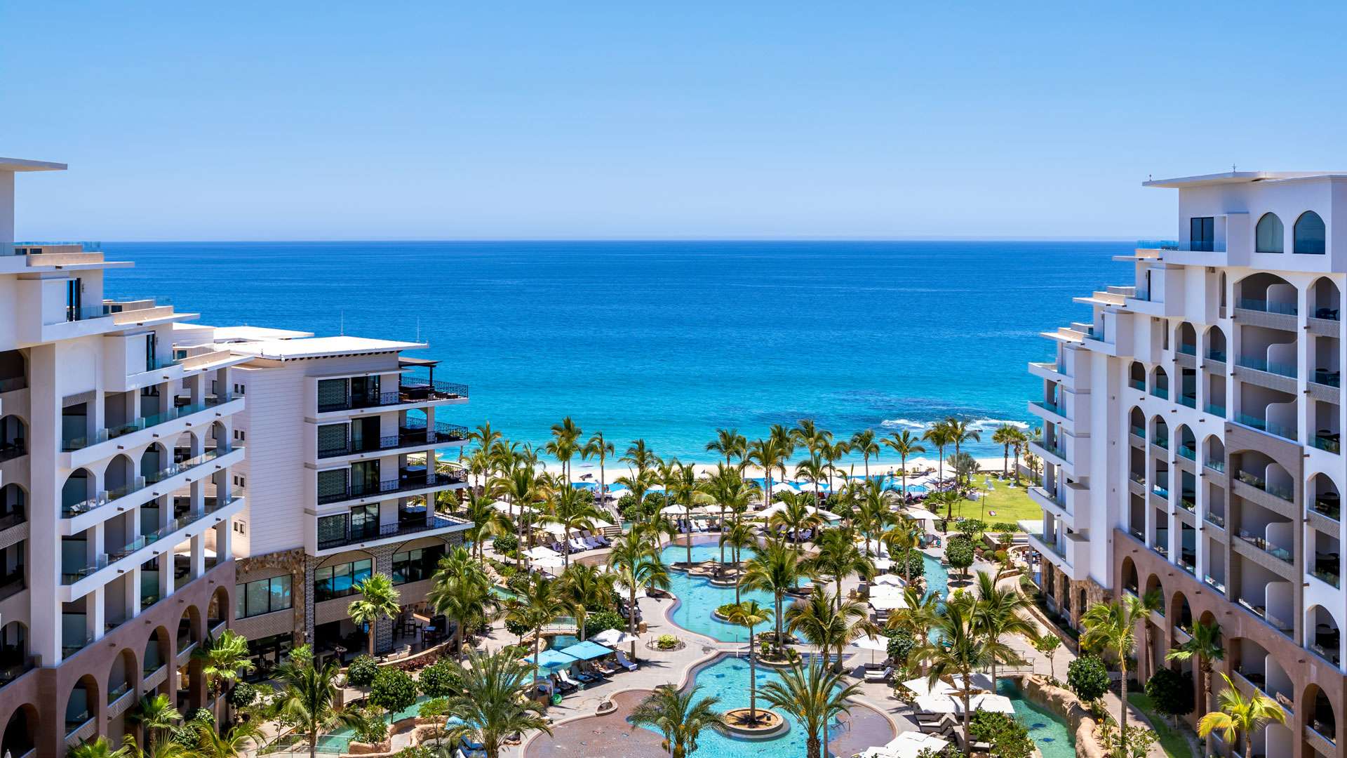 Villa La Valencia has raised the bar of Cabo vacations with its modern contemporary style and stunning beachfront property. Featuring 308 suites with up to 4 bedrooms, its 1114 ft lazy river, beachfront Jacuzzis, and freeform infinity pool. Designing personalized vacations for families, couples and everything in between is our specialty. With world class gourmet cuisine, Kids’ Club ($), and many more amenities you’ll love it on arrival. You deserve more than mundane Los Cabos all inclusive hotels, enjoy true luxury and comfort in one of the best luxury resorts in Mexico.